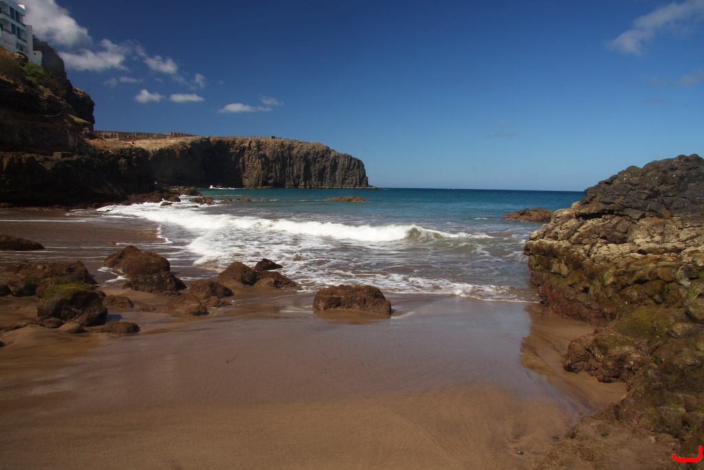 If Anfi beach is busy or you just want to swim in cool, deep water, then walk out onto the heart-shaped island and you’ll find a set of steps and a safe swimming area just next to the ferry dock.