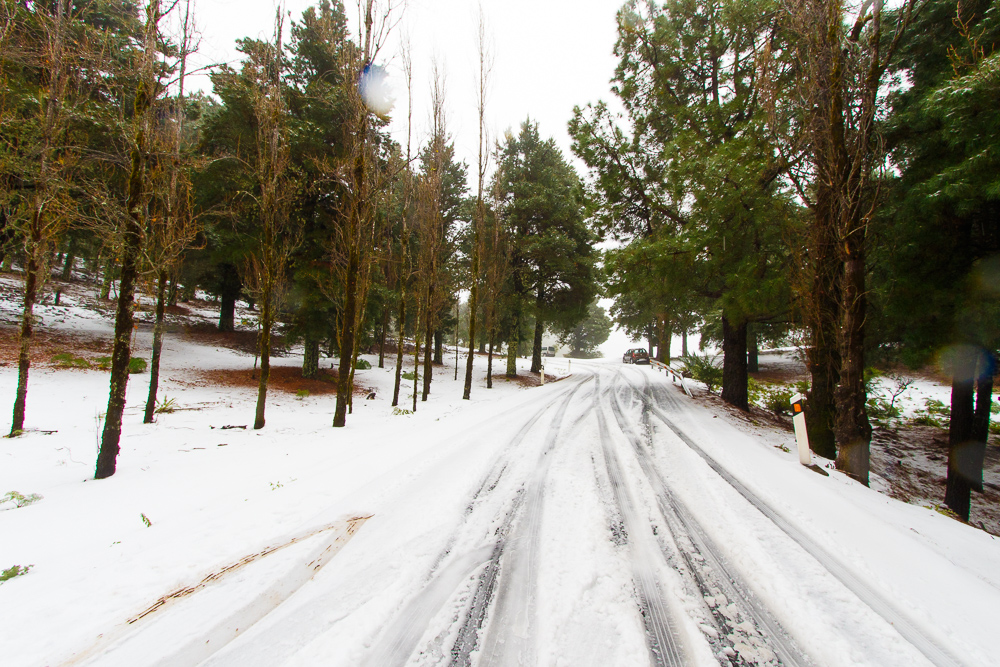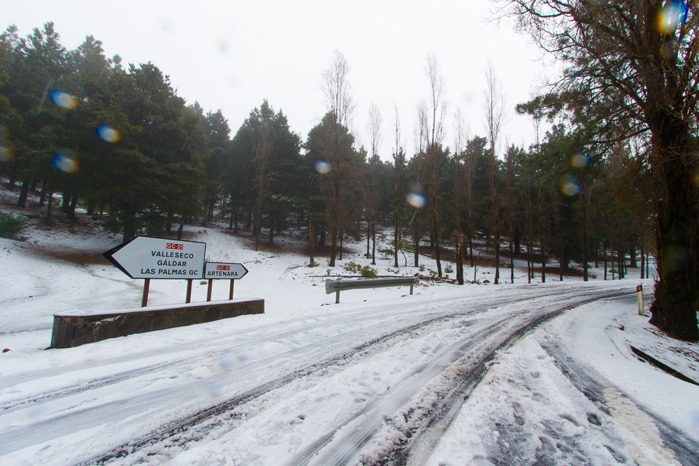 If you're in Gran Canaria and want to go up and see the snow we advise you to wait until it stops snowing and raining; The top of the island is currently closed off to prevent accidents; We had to stop to help a car that had slipped off the road on the way up to get the photos in this article.